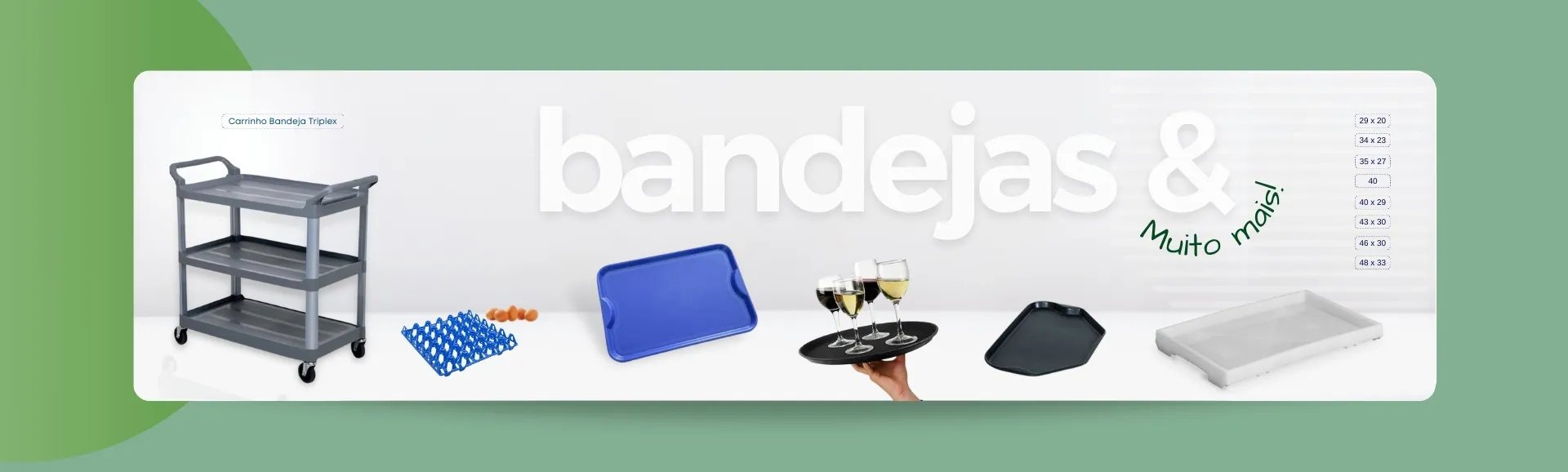 Bandejas Pequenas, Medias, e Grandes e extra Grandes