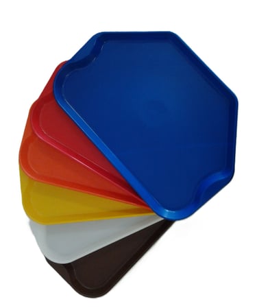 Bandeja plástica trapezoidal 46x30 cm - ideal para restaurantes, buffets e fast foods. Material resistente, leve e fácil de limpar e higienizar.
